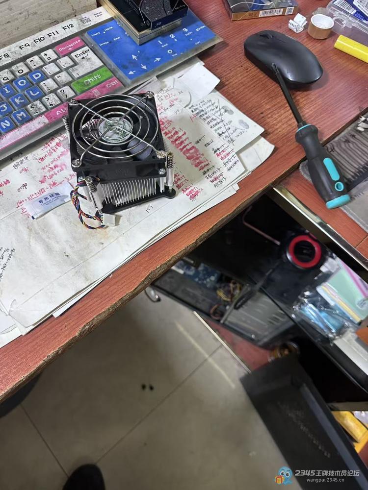 半个月前帮小卖部修电脑,开机完全没反应,拆开一看好家伙,灰尘厚得跟敷了层水泥似的,估计七八年没清理过!换了个电源(二手HKC收了150元),又发现CPU散热器风扇转得有气无力,就简单清理了一下灰尘,当时试机一切正常。 昨天老板又微信和我说,她电脑是不是就自动重启了,这样很烦人,叫我又去看下。我本来还在给客户安装3000的新机器,但是在安装系统自动运行的嫌隙,带了一个二手CPU散热器先去处理一下。