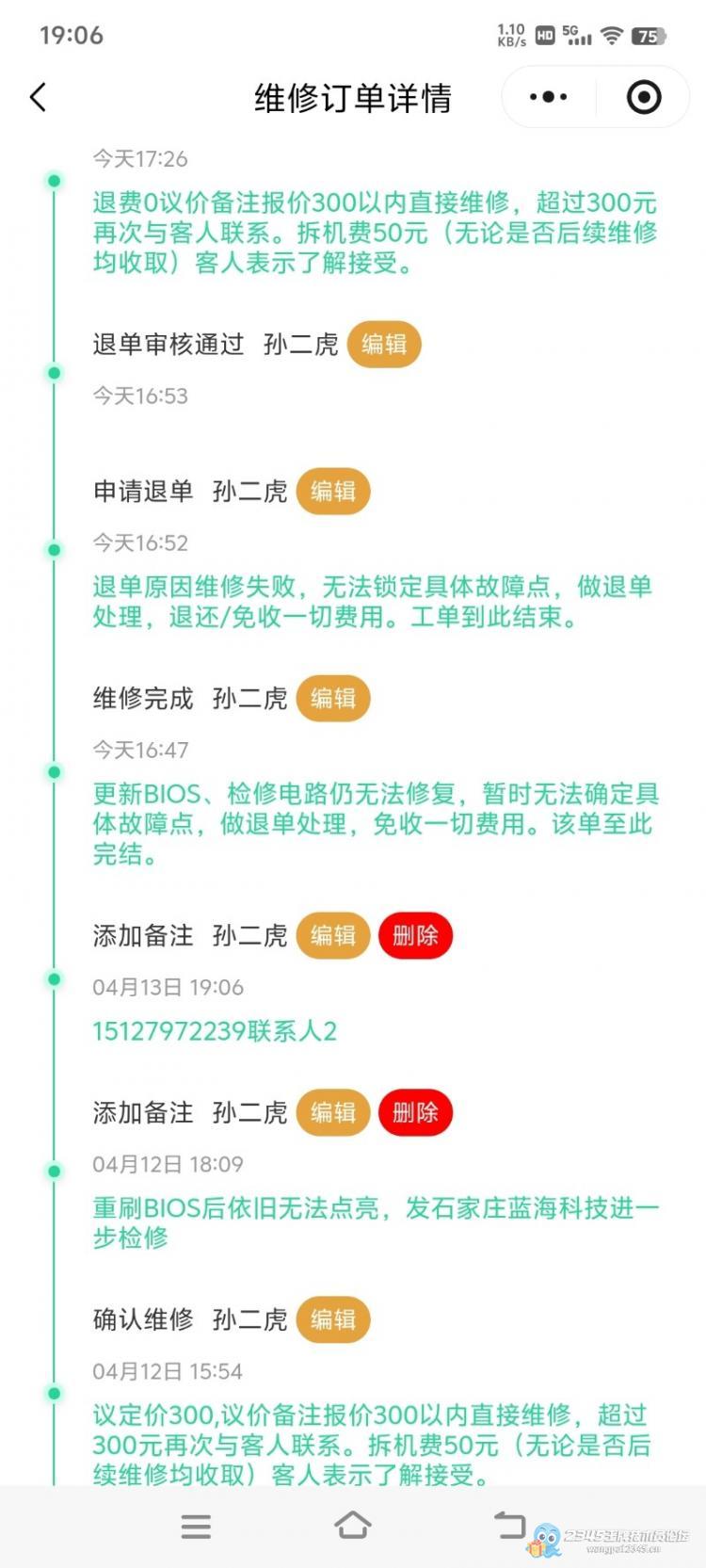 因此,但凡是硬件维修的,我都是要收 50 的检测费,不管能不能修好都要收