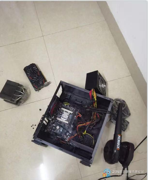 先断电拆机,然后把各个能拆的配件包括CPU风扇,显卡和电源等拆下来深度清灰,然后用低档位风速清理,边吹边用刷子扫,怕把元件吹坏。清完灰再重新装回去,开机测试,噪音明显小了很多,开机速度也快了不少。小姐姐挺满意,当场转了150块。