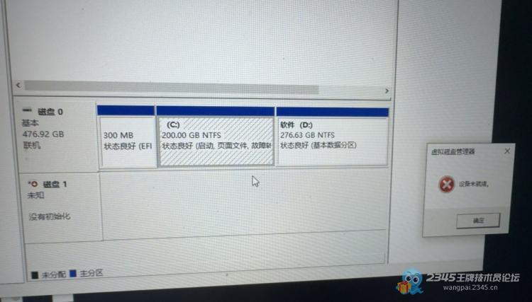 给人换个硬盘,插上没反应 ,然后就显示未初始化 ,点初始化就提示未就绪,坏了!