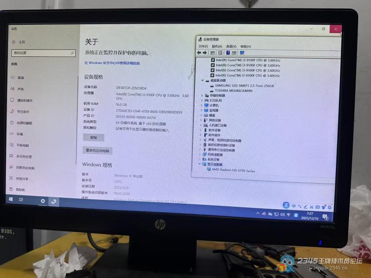 六点左右接到客户急单,需一台办公用电脑,要求4T硬盘。告知客户现有二手配置一套:I3 9100F处理器、16G DDR4内存、三星256G固态+4T机械硬盘,报价2000元并质保3年,确认后即可现场组装。客户表示需求主要是给资料员存资料,该配置完全够用,当即敲定安排组装。