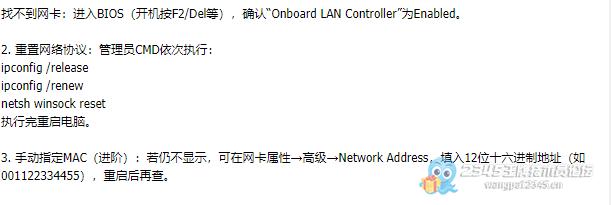 3. 硬件排查:换网线/路由器LAN口;怀疑网卡坏时,用USB网卡测试,能显示物理地址则说明内置网卡故障。