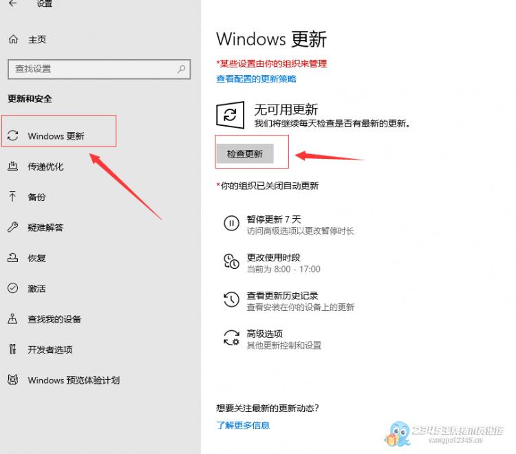 三.打开系统”设置“选择更新和安全→windows更新,点击检查更新,即可扫描到未安装的驱动程序并自动安装,如下图操作: