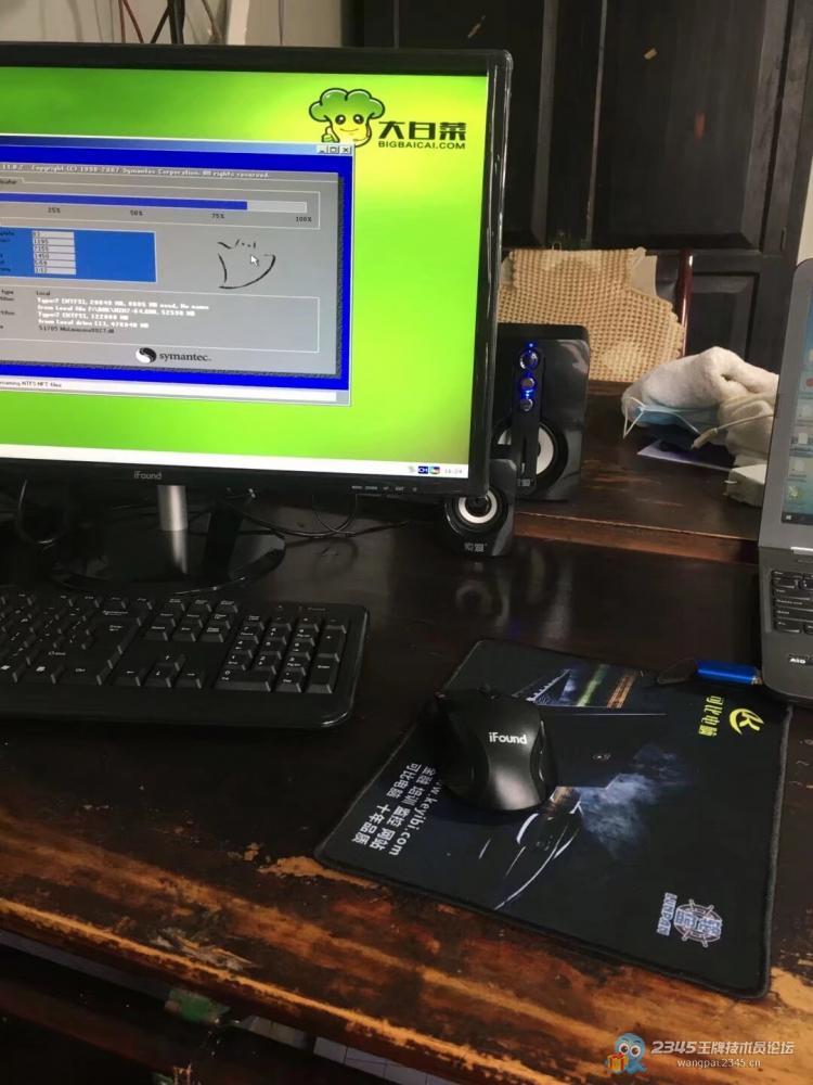 上午一个卖扣件的老板,他们的显示器不亮了,叫我拿一台24寸的显示器过去,然后还拿一套无线键盘鼠标,一个小音箱,送一个鼠标垫,顺道给他把系统重新安装过,显示器按照的680,无线套装90,,小音响80,系统这次算30,一共880.