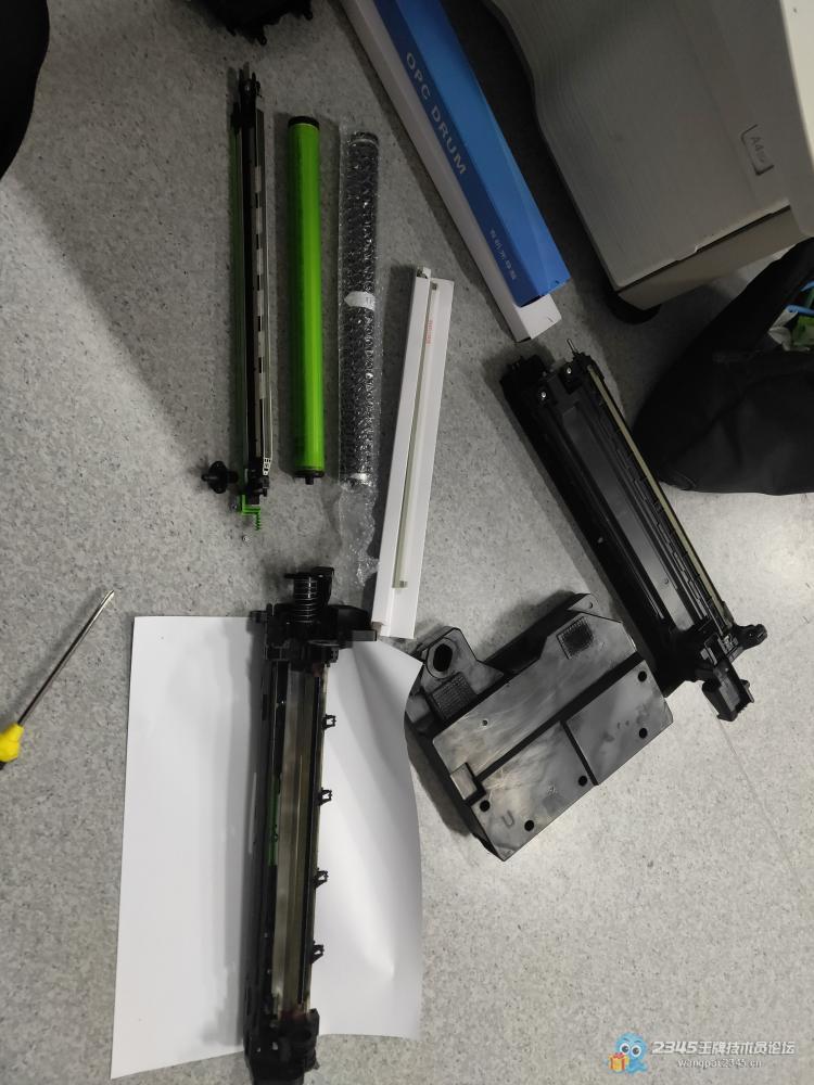 客户发来打印效果图,发现横竖黑色细线,判断是刮板老化,由于客户距离比较远,于是把鼓芯也带上了,清理完显影和刮板废粉安装上新刮板以后问题解决。