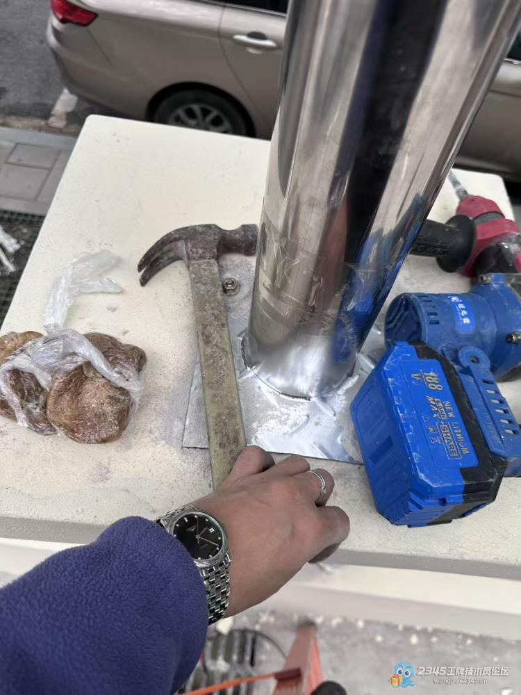 昨天老板说停车场外墙喷漆干透能装监控了,今天我刚好顺路,11点左右就到现场开工。之前专门给客户定制了5个不锈钢杆子,我拿货70块一个,报给客户150一个。