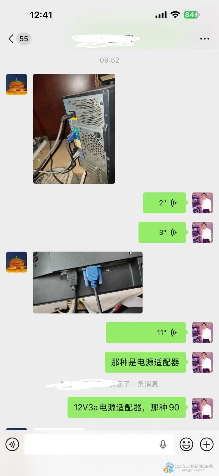 上午回到店里,第一个就是一个客户说她找了套二手电脑,她弄了好久,都没用反应,我叫她发给我看一下,我看了立马就知道这个肯定是个纯小白,然后说这种需要电源适配器的,报价90,然后就拿了一个12V3A的过去换上搞定。