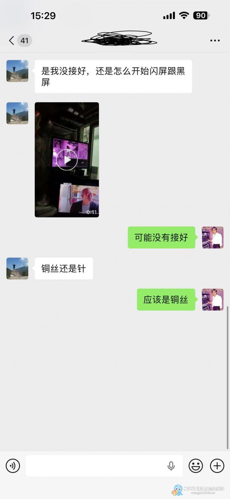客户回去接上过后,画面晃得厉害,还简单的给他说下,铜丝没接好~~~