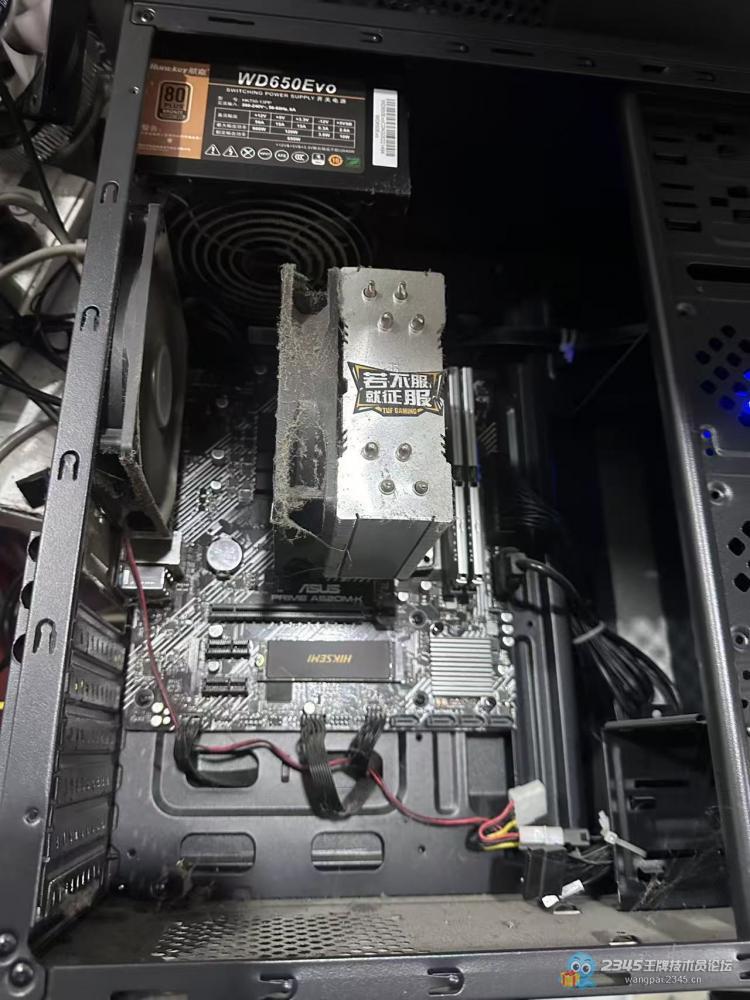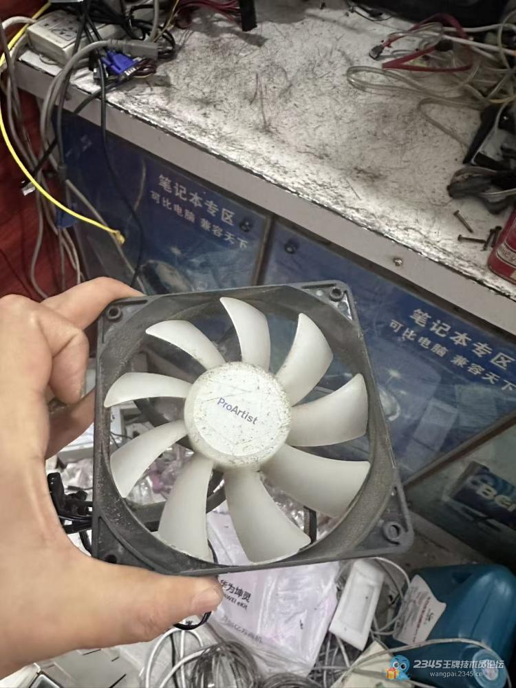 我一通电,一看就知道是CPU风扇的问题,本来想着开门红,别太狠,就跟他说小毛病,风扇坏了,换一个就行。