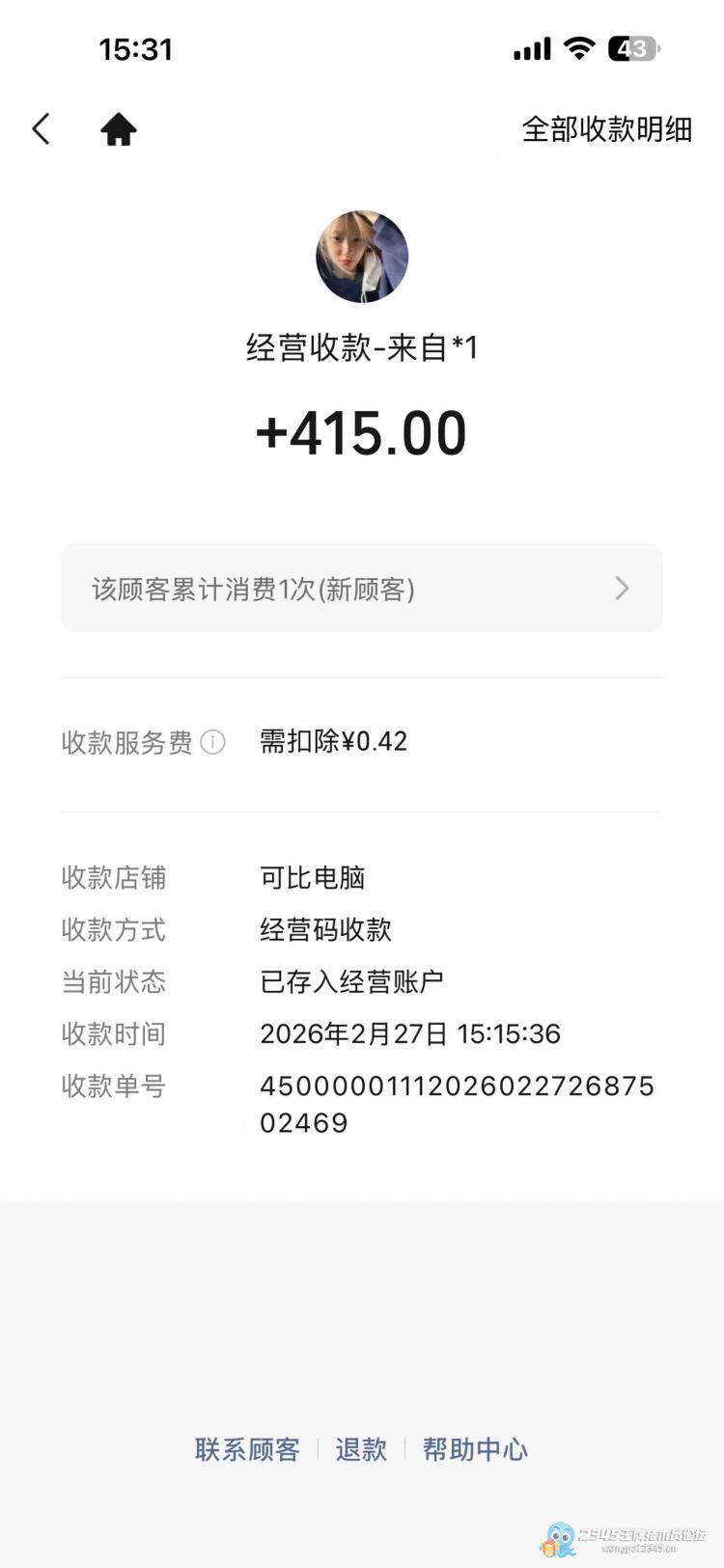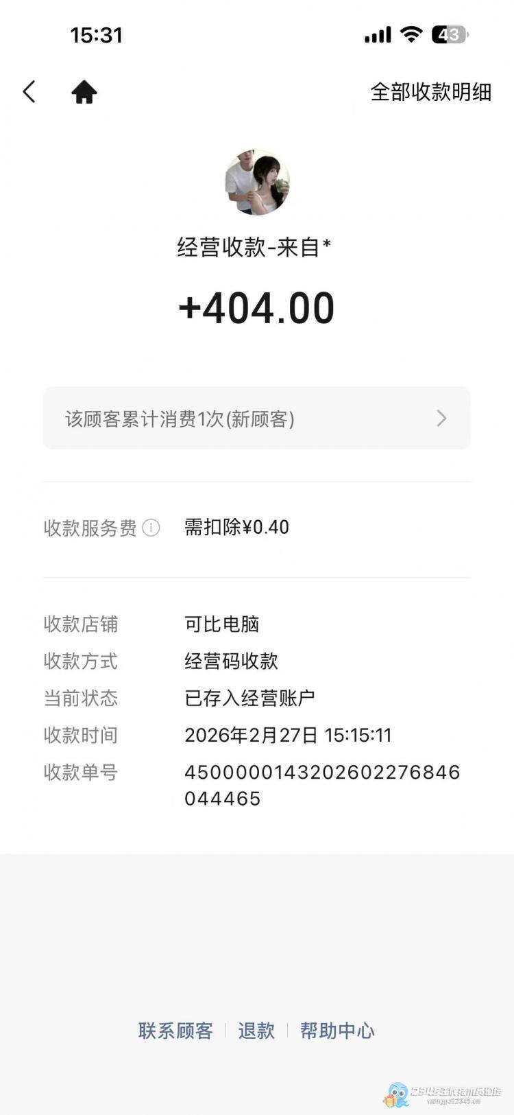 今天下午感觉挺清净啊,上午就搞定一个三星512G固态1200,直到下午才同时来2个客户(都是新面孔啊),一个是笔记本机械硬盘坏了,客户要求换机械硬盘,因为她是做资料的。另外一个买了一个二手20寸显示器,她们基本上是同时先付款的,500G二手笔记本机械硬盘加系统然后客户拿了一个鼠标垫,一共算404,另外一个20寸95新显示器算的415.