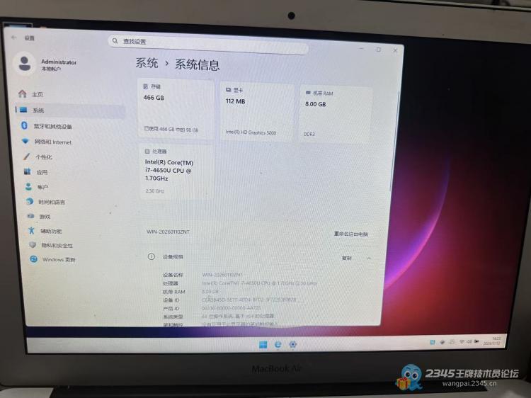 下午来了一台A1466的笔记本,客户刚升级了一个512G固态,没有系统,说给他安装一个双系统,报价300!