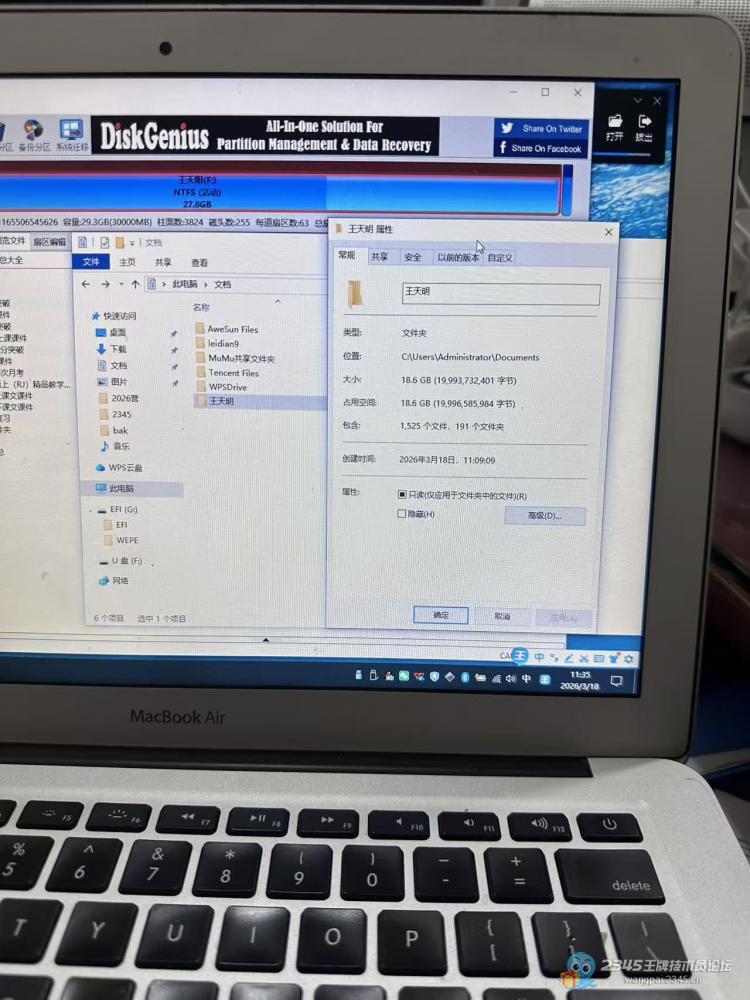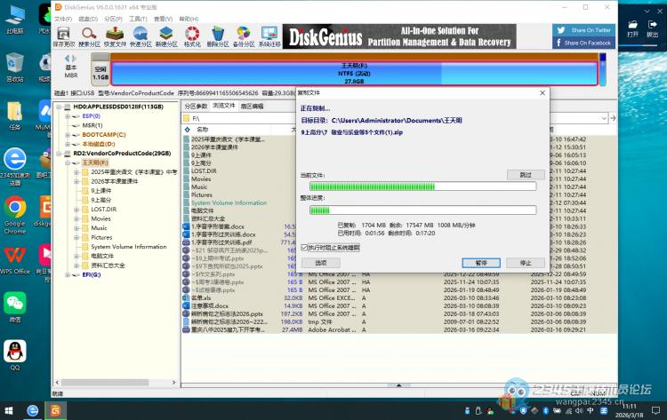 我一接上优盘,确实只谈成一个uefi分分区的G盘,哪个能正常打开,F盘是U盘存储数据的,打不开,而且优盘1到2分钟温度都感觉飙升到70多左右,手摸都遭不住。那么只能进DISKGEN专业版里面看看,还好,进去能正常识别,这样不是又要捡漏了吗?根本不需要其他复杂的操作就能恢复出来,妥妥的纯赚几百啊!
