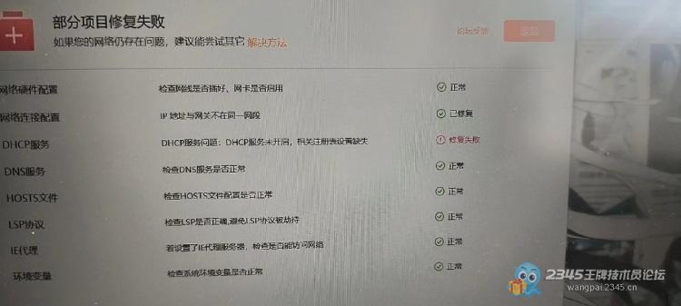 客户问网络问题,让他自己用工具修复一下,还是有错误看来需要上门服务了,这样才好收费不是