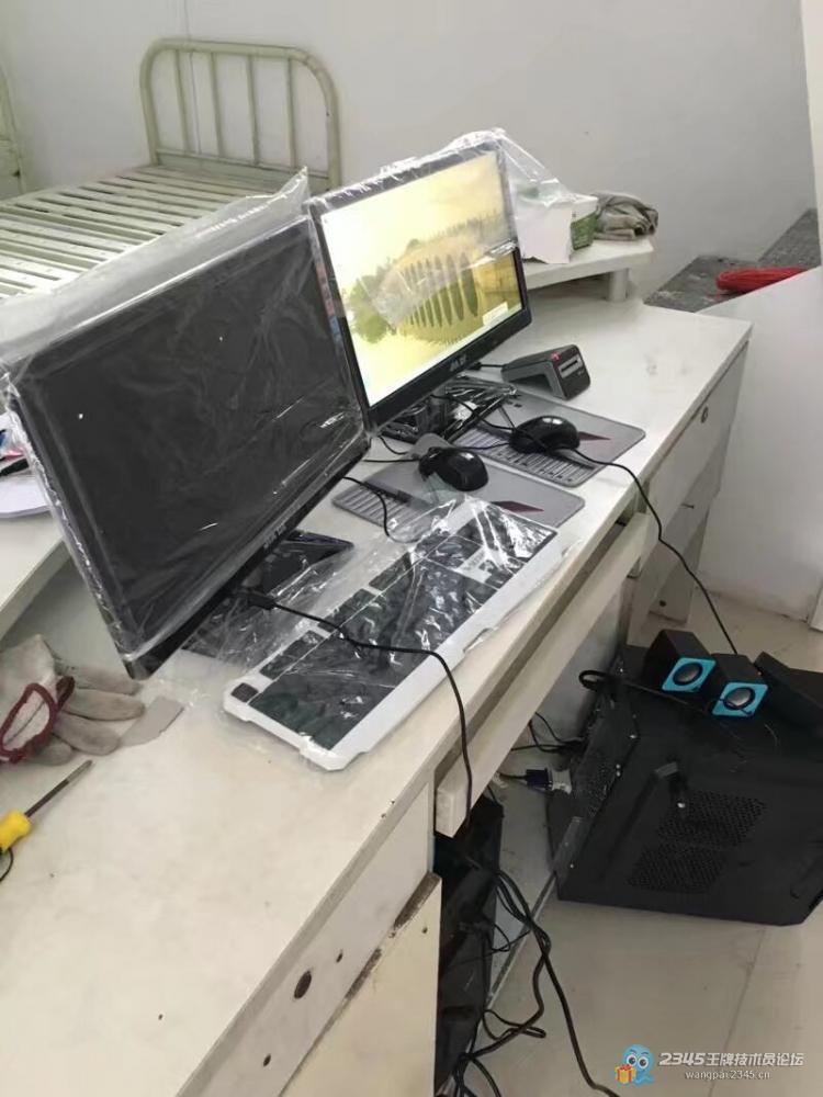 前两天一个小诊所付了全款定了2套办公电脑,配置比较低,今天上午就送货上门,因为还没有做清洁,显示器暂时用口袋装一下!