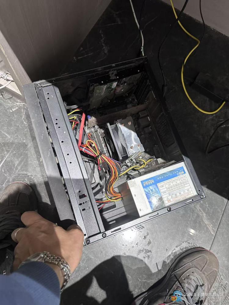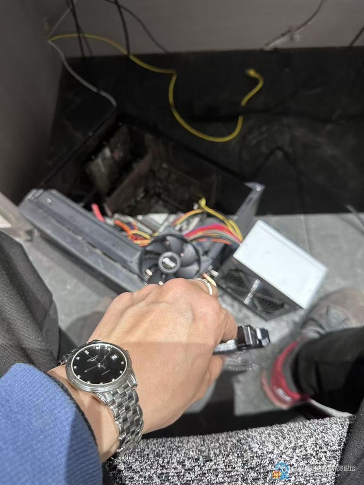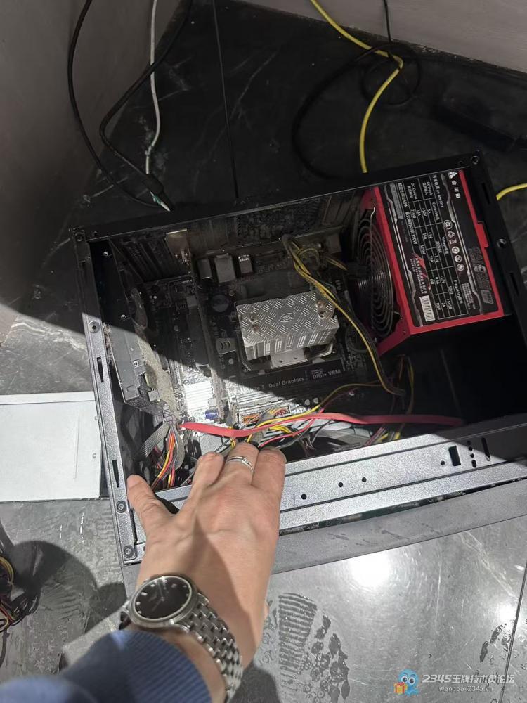 到那一看,开机确实不亮,但主机后面网口的网线灯还亮着,说明待机电源是有的。拆开再按开机键,机子完全没反应,CPU风扇也不转,我当时就判断是电源坏了。