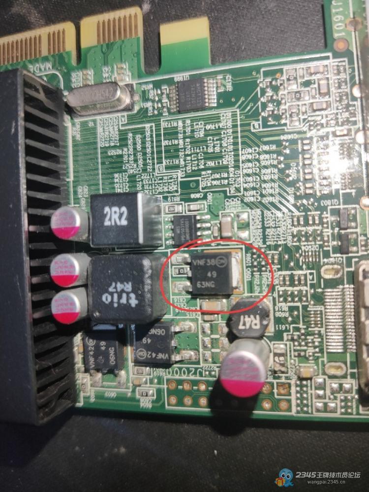 显卡不亮了,检查供电管烧了,场效应管两边直通了,因为是直达核心的供电,核心估计一起挂掉了