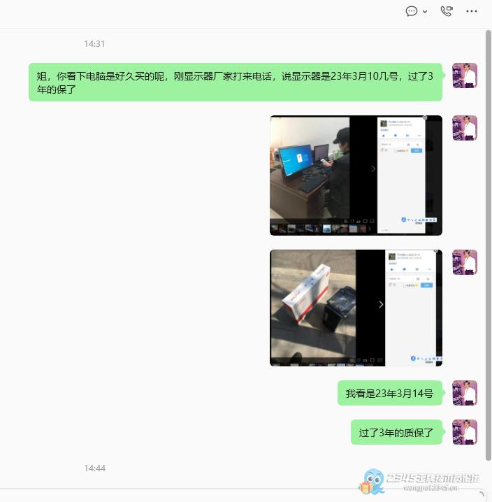 前几天要一个客户说她显示器不亮了,然后我就带了一个备用给她暂时用着,当时问客户电脑买了多久,客户说可能2年样子,我以为还在质保期内,就把显示器返给厂家了,我也没有查询卖的时间,结果今天下午厂家打来电话说过保了,然后我才查询卖电脑的时间,确实是过保了。