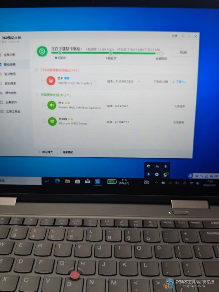 有那句说那句,有时很多办法都试过了,就是不行,结果用了360驱动大师后就能解决问题,必须表扬一下它!还是那台Thinkpad x1,更换固态重装了,一开始用驱动总裁下载显卡驱动安装后,既然不定时闪屏,这可交不了差啊 ?想着上官网找驱动,结果找了个寂寞(没有),以前遇到像类似这样的,用联想电脑管家,找驱动问题自动帮你解决,结果还是不行,换驱动人生,[敏感词]都无能为力解决!最后死马当活马医,用360驱动大师解决问题!
