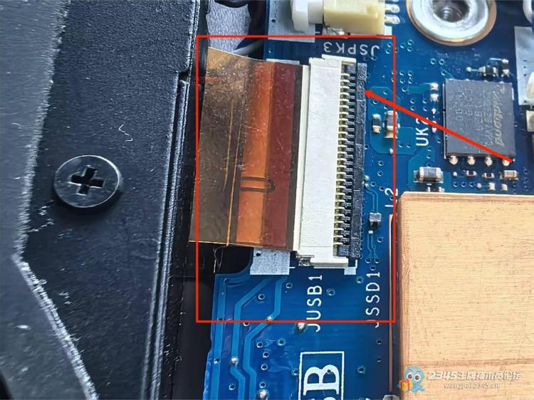 拆开后盖后,顺着USB接口的排线,发现排线接口处脱焊了。
