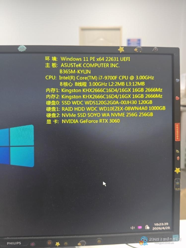 要来新人了,仓库找了一台电脑出来,叫我安装上,重装个系统,收费自然一百元!看了一下这配置,用来做PS有点浪费吧 ?