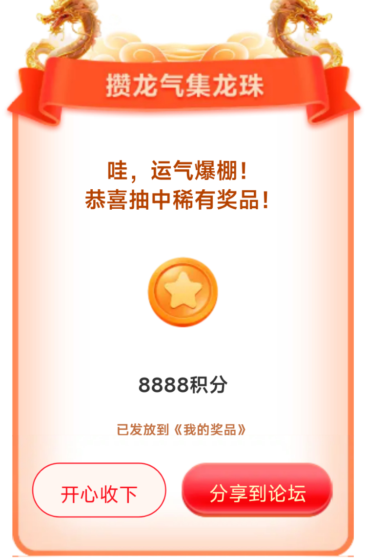 我在联盟参加的【攒龙气抽龙珠】活动中抽到了8888积分,活动福利很不错,