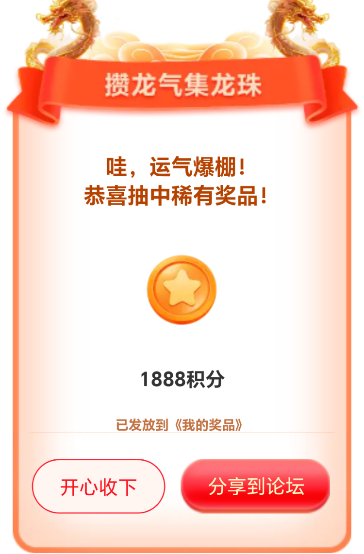 我在联盟参加的【攒龙气抽龙珠】活动中抽到了1888积分,活动福利很不错,