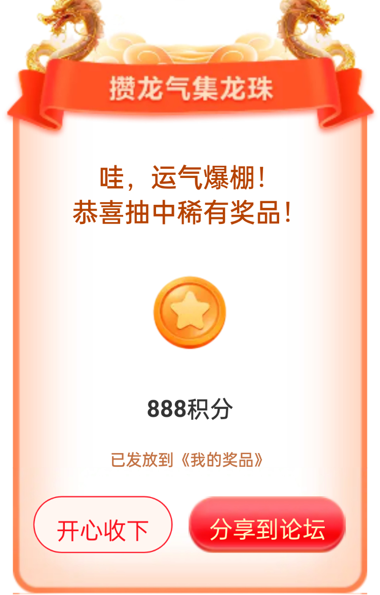 我在联盟参加的【攒龙气抽龙珠】活动中抽到了888积分,活动福利很不错,