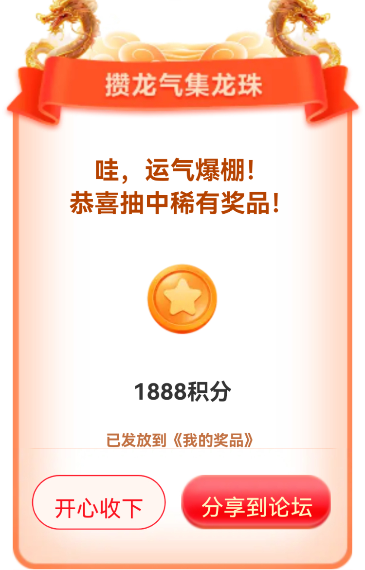 我在联盟参加的【攒龙气抽龙珠】活动中抽到了1888积分,活动福利很不错,