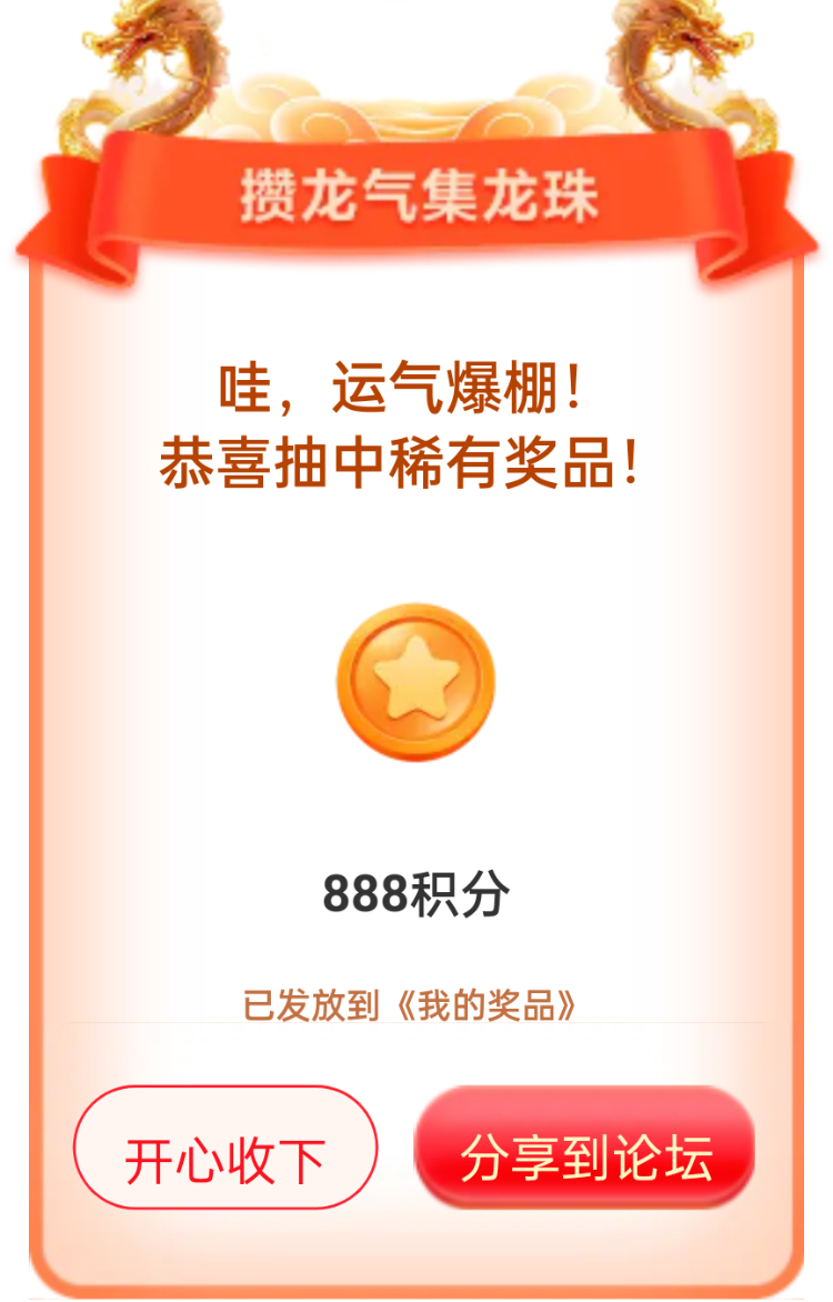 我在联盟参加的【攒龙气抽龙珠】活动中抽到了888积分,活动福利很不错,