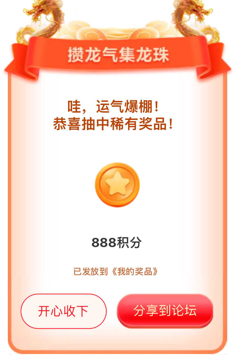 我在联盟参加的【攒龙气抽龙珠】活动中抽到了888积分,活动福利很不错,