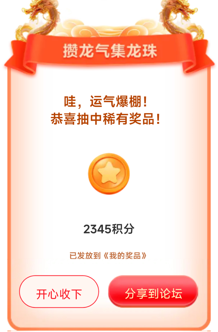 我在联盟参加的【攒龙气抽龙珠】活动中抽到了2345积分,活动福利很不错,