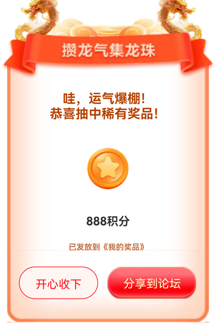 我在联盟参加的【攒龙气抽龙珠】活动中抽到了888积分,活动福利很不错,