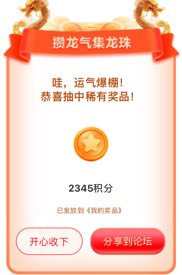 我在联盟参加的【攒龙气抽龙珠】活动中抽到了2345积分,活动福利很不错,