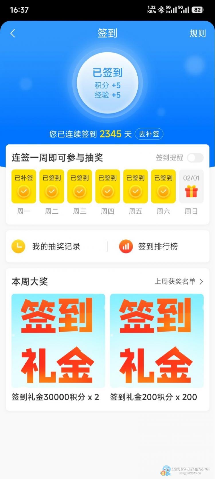 连续签到,第一次这么久,巧了,又是2345!
